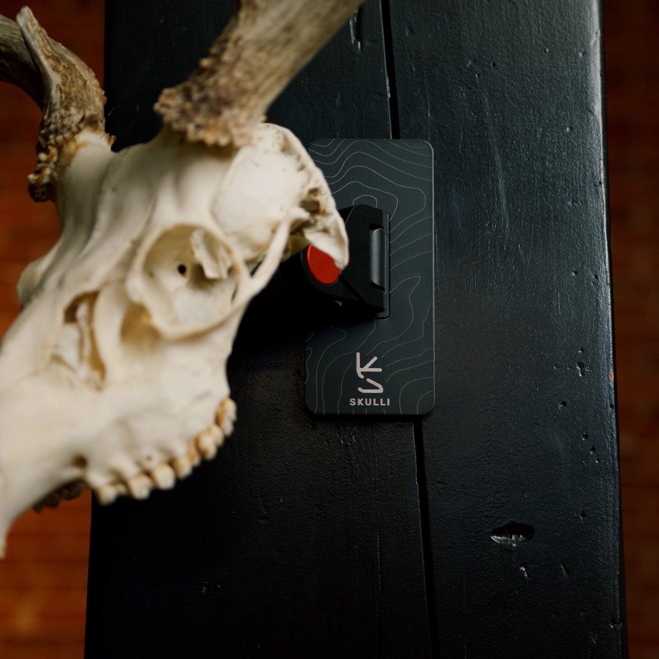 This mount is machined in Montana from solid aluminum and finished in anodized black with an orange accent. This mount is incredibly strong, easy to install, fully adjustable, and has a secure hold on your skull. It comes with a decorative faceplate that magnetizes to the wall mounting plate, giving you a super clean finish with no screws showing. An information sticker is included as well to put on the back of your faceplate so you can always remember the hunt.