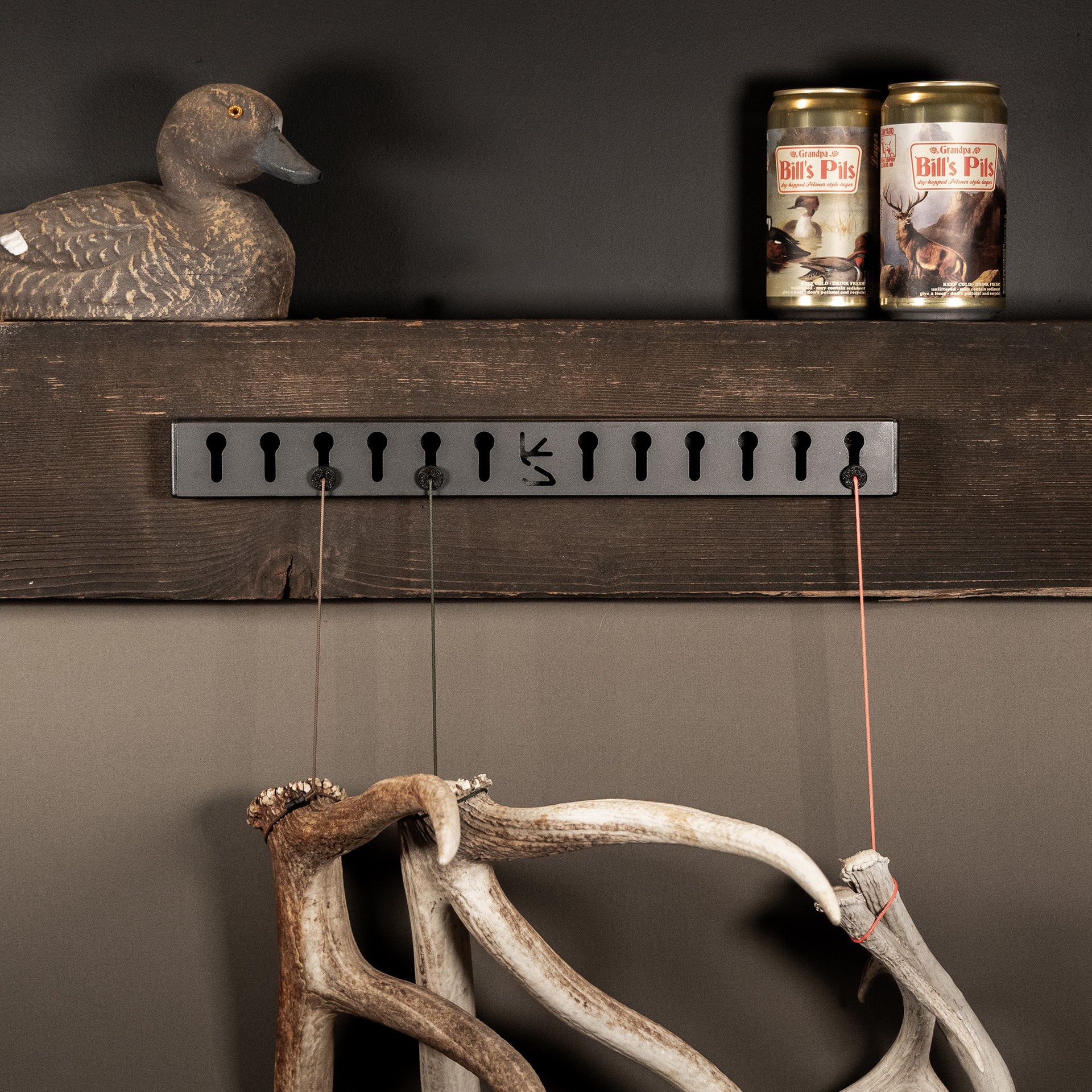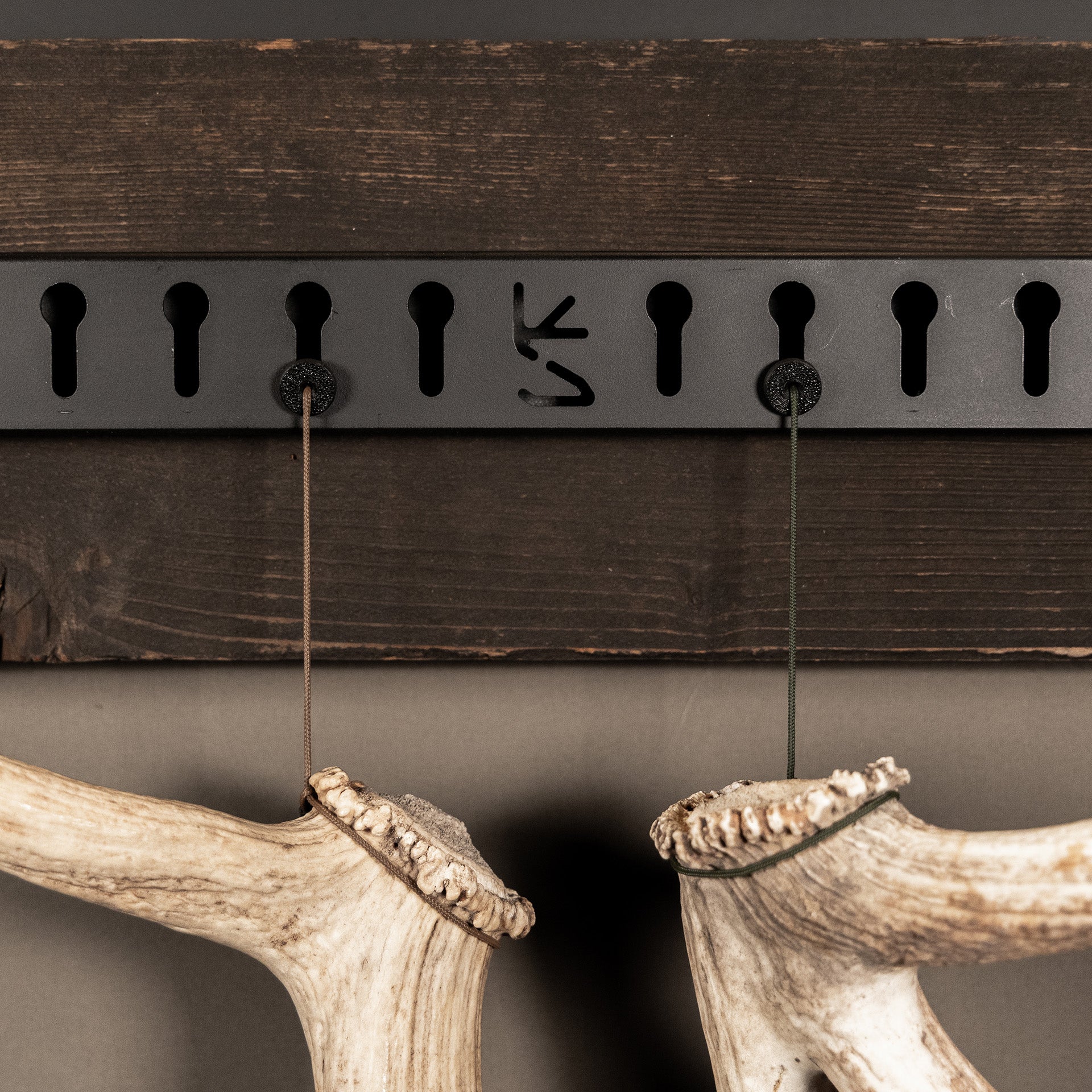 Organize and display your antler sheds with the rugged and refined, patent-pending Shed-Lock™ 12 Slot Wall Mount. Built from powder-coated laser-cut steel, this mount features 12 precision-cut slots designed to accept our Bead Locks. Includes 12 Shed-Lock™ Loops in durable Coyote Brown braided cord, making it easy to secure and showcase up to 12+ antlers out of the box. Expand your display as needed with additional Shed-Lock™ Rails and Loops.